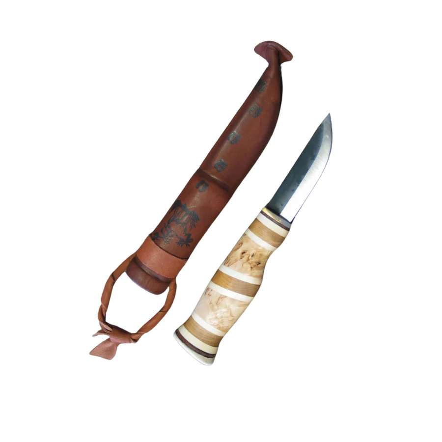 Lapin puukko teräsuojalla on suomalaisen käsityöperinteen kaunis ja arvokas lahja, jossa yhdistyvät käytännöllisyys ja symbolinen arvo. Puukko on varustettu kestävämmällä teräsuojalla, mikä tekee siitä luotettavan kumppanin niin retkille kuin arjen käyttöön. Tuote toimitetaan näyttävässä lahjapakkauksessa, joten se on heti valmis annettavaksi ilman lisäpakkausta. Suomessa valmistettu puukko huokuu laatua ja aitoutta, ja sen ajaton muotoilu tekee siitä lahjan, joka säilyy arvossa sukupolvelta toiselle