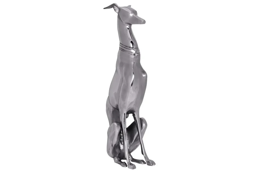 Tämän koriste-esineen juju piilee materiaalissa ja muotoilussa: moderni alumiinikoirapatsas, jonka hopeinen pinta kimaltaa valossa ja tuo tilaan ripauksen tyylikästä leikkisyyttä. Patsas on noin 70 cm korkea ja painaa viitisen kiloa, joten se tekee vaikutuksen olemuksellaan. Jokainen yksilö on käsin valmistettu, mikä antaa sille uniikin luonteen – kuin pieni, elegantti ystävä, joka vartioi kotiasi ilman tassunjälkiä sohvalla.