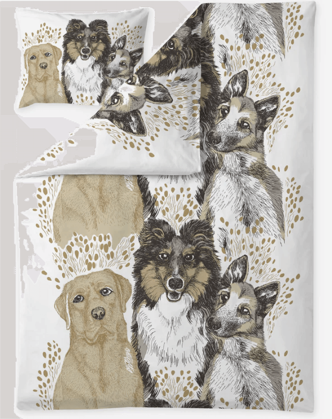 Tämä pussilakanasetti saa jokaisen koirien ystävän hymyilemään. Se on valmistettu pehmeästä 100 % puuvillasta, ja laadukas 152 TC -kangas takaa miellyttävän tuntuman ihoa vasten. Ystävykset-kuosissa kolme koirakaveria – labradorinnoutaja, shetlanninlammaskoira ja pieni pystykorva – poseeraavat leikkisästi rinnakkain muistuttaen siitä, että ystävyys ylittää rodut ja rajat. Pussilakanasetti on suunniteltu Helsingin Vallilassa ja kantaa ylpeästi Design from Finland -merkkiä. Lisäksi se on STANDARD 100 by OEKO-TEX® -sertifioitu, joten tuote on turvallinen niin iholle kuin ympäristölle.