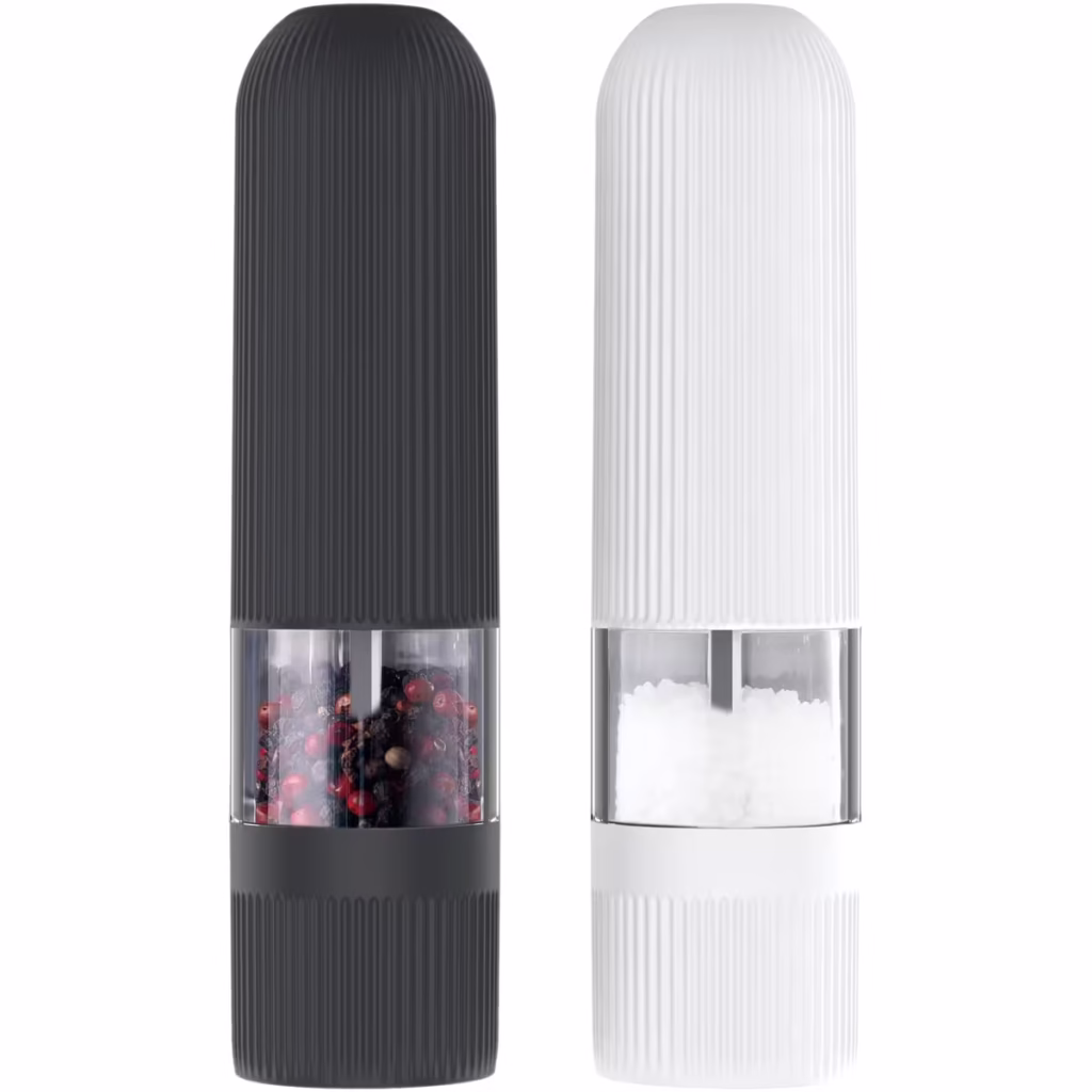 NODin sähköinen maustemyllysetti tuo keittiöön sekä käytännöllisyyttä että ripauksen modernia tyyliä. Setissä on kaksi myllyä, toinen suolalle ja toinen pippurille, ja jauhatuskarkeutta voi säätää helposti oman maun mukaan. Käytön aikana syttyvä valo helpottaa maustamista myös hämärässä, mikä tekee arjen ruoanlaitosta sujuvampaa ja miellyttävämpää. Pliseerattu muotoilu tekee myllyistä tyylikkäät ja uuden kodin keittiöön sopivat. Tämä on mainio tuparilahja, sillä se on sekä hyödyllinen että kaunis – pieni mutta vaikuttava lisä keittiön toimivuuteen.