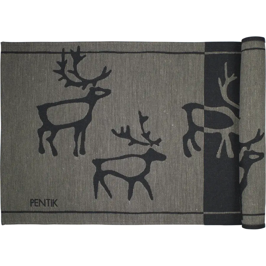 Pentikin Saaga-laudeliina on lämminhenkinen ja pohjoismaista tunnelmaa huokuva lahja uuteen kotiin. Musta sävy ja porokuvio tuovat tekstiiliin näyttävyyttä, ja pellavan sekä puuvillan yhdistelmä tekee siitä laadukkaan ja pitkäikäisen. Koko 46 × 150 cm sopii täydellisesti saunalauteille tai osaksi kodin sisustusta. Tämä on ajatuksellinen tuparilahja ihmiselle, joka nauttii saunomisesta, sisustamisesta tai molemmista – pieni mutta kaunis ele, joka jää käyttöön pitkään.