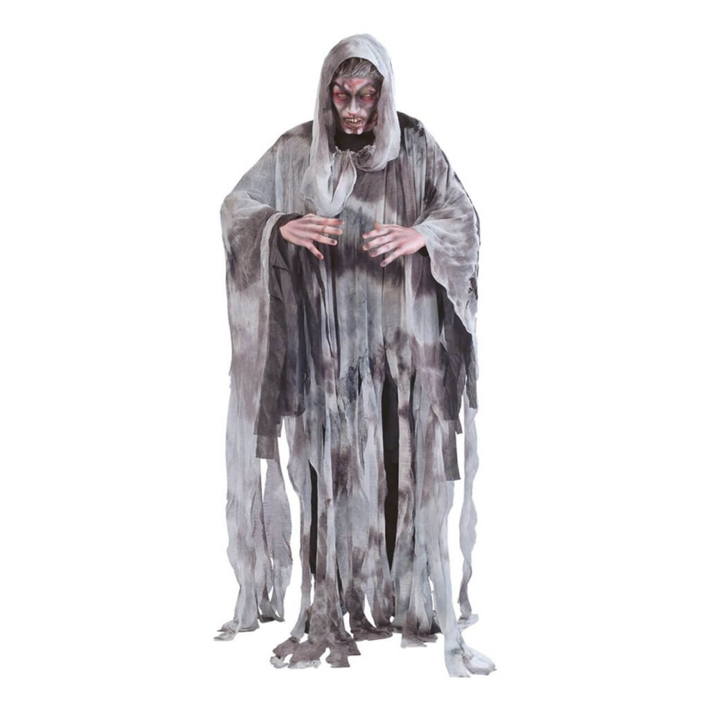 Kulje varoen pimeyden ja hämärän rajalla – Pelottava Henki ilmestyy pitkänä, harmaansävyisenä hahmona, jonka huppu laskeutuu syvälle kasvojen ylle. Hapsuinen helma hulmuaa hiljaa, kuin tuulen kuljettamana raunioiden keskellä. Ohut ja harsomainen polyesterimateriaali tekee asusta sekä ilmavan että uhkaavan, kuin aave joka ei jätä rauhaan. Kun liikkeesi ovat hitaat ja hiipivät, ja lisäät viimeistelyksi sopivan maskeerauksen, tämä hahmo saa takuulla kylmät väreet kulkemaan kenen tahansa selkäpiitä pitkin.